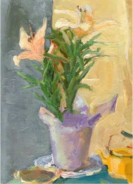 Peach Lilies: oils on mounted Arches paper, 9 x 12" available